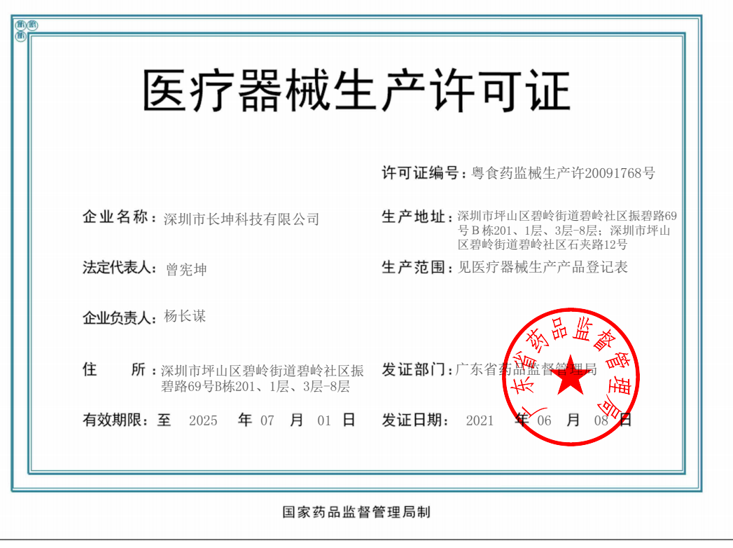 歡迎來到深圳市長(zhǎng)坤科技有限公司官網(wǎng)! 粵深食藥監(jiān)械經(jīng)營(yíng)備20151166號(hào) 粵食藥監(jiān)械生產(chǎn)許20091768號(hào)
